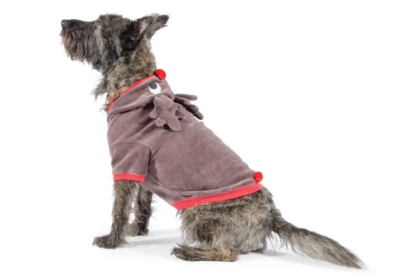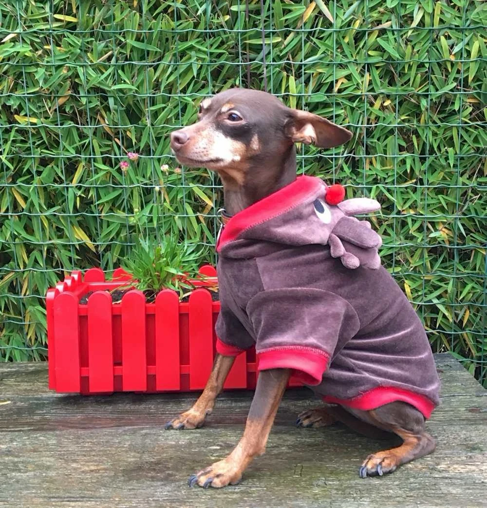 Uw hond zal er fantastisch uitzien in dit leuke hondenjasje ! Het is in bruin uitgevoerd met kerstrode biezen. De jas is gemaakt van heerlijk warm fleece en erg leuk afgewerkt met een opvallend rendier op de rug.