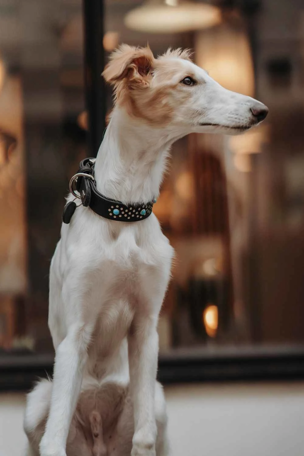 Een sierlijke halsband die absoluut opgemerkt zal worden ! Het rundleer is gevoerd met een zachte laag nappaleer. Door de gebogen verwerking van de voering is de halsband onvergelijkbaar zacht en ook erg zacht voor de vacht van de hond. Een pluspunt voor gevoelige viervoeters die niet zonder maximaal comfort willen. De bovenkant van de halsband, die geschikt is voor dagelijks gebruik, is versierd met een geslaagde mix van platte, glanzende metalen klinknagels en turquoise edelstenen.
