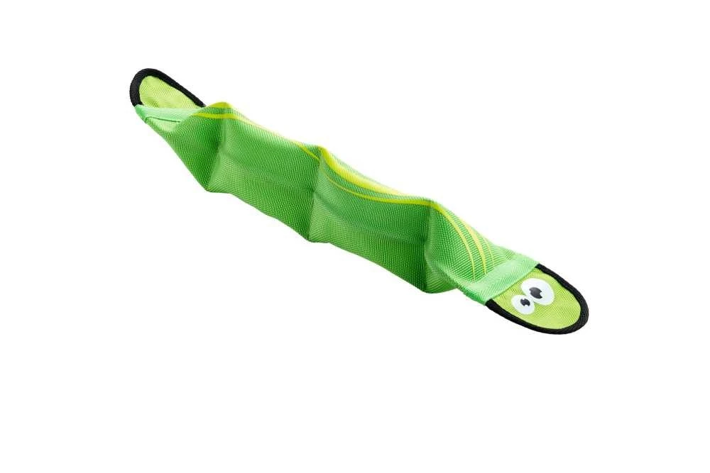 Dit hondenspeelgoed ziet eruit als een kleurrijke slang en geeft jou en je hond eindeloos veel speelplezier. Dankzij de twee piepers en de plastic, antislip vorm, is het speeltje perfect om te gooien en te apporteren.